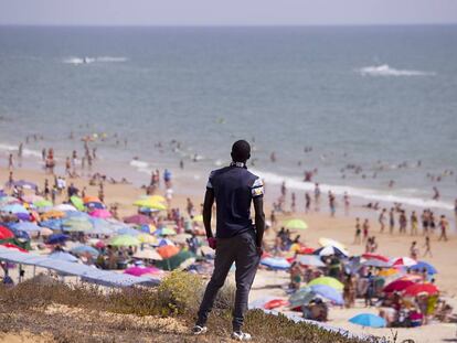 Un senegalés se asoma desde una atalaya a una playa del sur de Europa para saber mejor cómo ganarse la vida