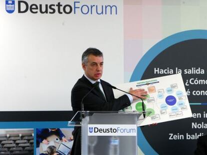 El 'lehendakari' insiste en el acuerdo institucional, la necesidad del autogobierno fiscal y rechaza la entrada del Gobierno vasco en Kutxabank