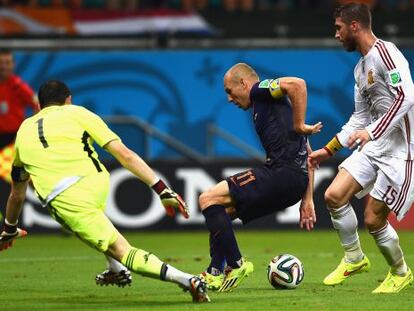 El delantero lidera la venganza de la final de 2010, cuando Casillas le detuvo un remate crucial El holandés llevó por la calle de la amargura a Sergio Ramos y Piqué