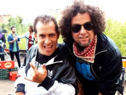 El cantante y Calamaro graban un vídeo para su nuevo disco en Carabanchel con los vecinos como extras