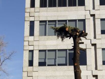 El cedro del número 66 del Paseo de la Castellana ha sido mutilado para ser talado próximamente