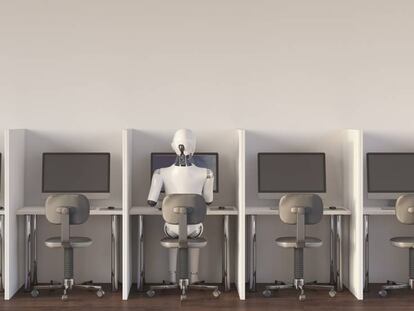 Un trabajo que nos controla, explota, deshumaniza y enferma, nos lleva a anhelar la pronta llegada de los autómatas buenos, sonrientes y sumisos