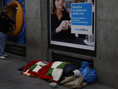 Hay quien enfoca una calle de Madrid y ve los bares de bote en bote. Yo veo un mendigo que duerme en un cajero