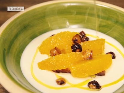 El frescor de los cítricos y el punto salado del queso de cabra redondean un postre que parece muy finolis, pero que se hace con la gorra.