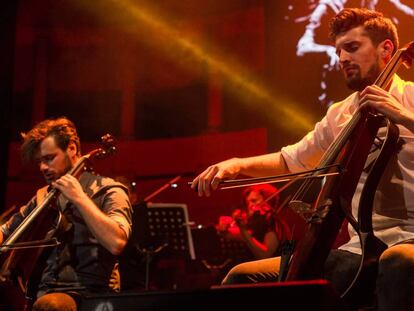 El duo 2Cellos, con su potente tratamiento del instrumento, su indiscutible virtuosismo y su perfecto y estudiado concepto del espectáculo, arrasó en el Jardins de Pedralbes