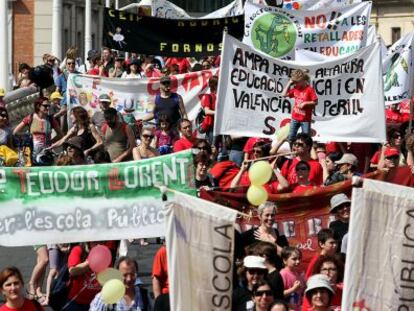 Medio millar de alumnos y trabajadores de Canal 9 y la EMT protestan en Valencia La marcha rechaza el decretazo de recorte educativos de Rajoy y el aplicado por la Generalitat