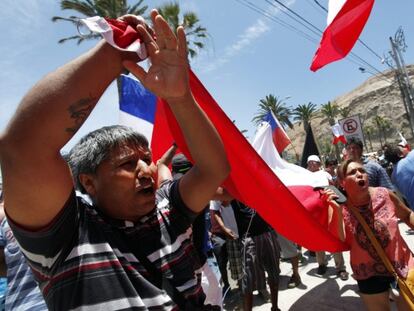 En Arica, al norte de Chile, unos 3.000 pescadores marchan a la intendencia lanzando proclamas contra sus vecinos del norte y los políticos