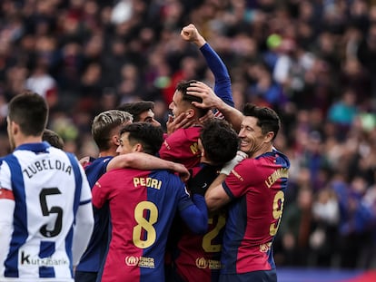 Los azulgrana golean a una Real Sociedad que al cuarto de hora se quedó con 10 jugadores