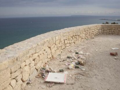 La Serra Grossa de Alicante sufre la suciedad y parte de su nueva vegetación ya está seca