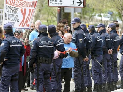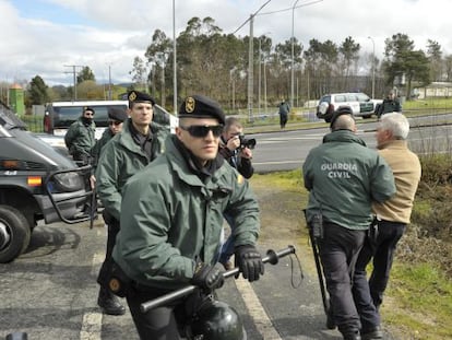 Las fuerzas de seguridad cortan todos los accesos al recinto donde se celebra el acto en Silleda En muchos puntos hay más agentes que manifestantes, en su mayoría jubilados