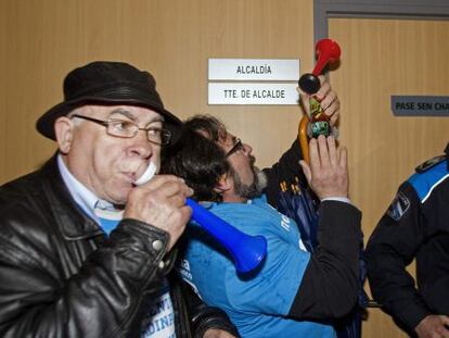 El alcalde y sus concejales tuvieron que salir del Ayuntamiento escoltados por la Guardia Civil y la Policía Local