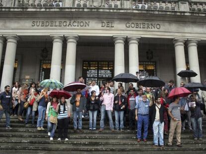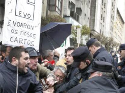 Manifestantes fuerzan el cierre de oficinas de NCG en A Coruña y Sanxenxo