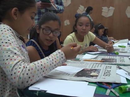 Una veintena de niños se transforman en periodistas por unas horas gracias a un taller que imparte EL PAÍS en la FIL