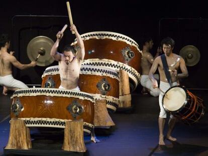 Los tambores tradicionales japoneses de Kodô atronan en el Festival de Torroella de Montgrí
