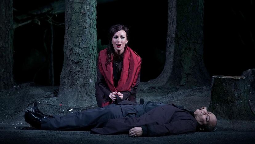 Dispersos entre las butacas, tapados con las mascarillas, sin quitarnos los abrigos —el frío de la calle llegaba por las puertas abiertas para la ventilación reglamentaria—, encontrábamos en el escenario no un jardín rococó por el que se mueven con pasos de danza personajes con peluca, sino un bosque inhóspito en el que la sugestión de la naturaleza era mucho menos poderosa que la de un entorno degradado por el abandono y la basura. Pero lo más perturador no era la escenografía, ni la ambientación sórdida en ese bosque inundado de bolsas de plástico, latas de cerveza, jeringuillas: lo que sobrecoge de verdad es esa música que avanza con la misma urgencia convulsa de una historia volcada hacia el desastre, de ese libreto en el que las palabras se agregan las unas sobre las otras y se confunden entre sí en una fiebre que no cesa nunca, igual que los personajes chocan, se agrupan, pelean, engañan, seducen, se hacen pasar los unos por los otros, se persiguen, se matan.