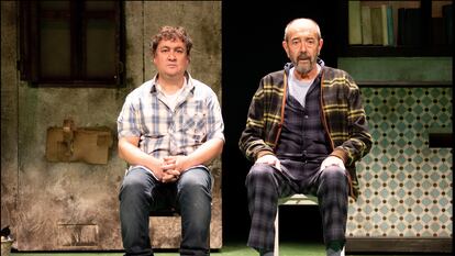 Nunca es fácil adaptar para el teatro o el cine una novela. Hay que recortar, agilizar diálogos, prescindir de pasajes descriptivos. Una sucesión continua de renuncias. Más difícil parece cuando se trata de una obra como Los asquerosos, de Santiago Lorenzo, uno de los grandes fenómenos editoriales de los últimos años, cuya trama es mínima: un joven hiere a un policía, se refugia en un pueblo abandonado con la ayuda de su tío y acaba adorando esa vida en soledad hasta convertirse en un misántropo. Además, no hay diálogos, todo lo que sucede está relatado por el tío y el lenguaje es barroco. En este sentido, la versión que han hecho Jordi Galcerán y Jaume Buixó es elogiable, pues extrae diálogos donde no los había desgajando el monólogo del tío en conversaciones telefónicas con el sobrino, lo que convierte la narración en acción teatral. Y sobre todo, saca todo el jugo humorístico que contiene la novela, especialmente en los episodios en los que aparecen los “asquerosos” o “mochufas”, la estridente y paródica familia de domingueros que irrumpe en el pueblo cada fin de semana.