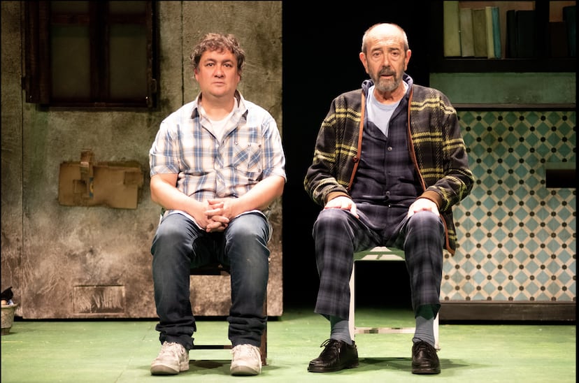 Nunca es fácil adaptar para el teatro o el cine una novela. Hay que recortar, agilizar diálogos, prescindir de pasajes descriptivos. Una sucesión continua de renuncias. Más difícil parece cuando se trata de una obra como Los asquerosos, de Santiago Lorenzo, uno de los grandes fenómenos editoriales de los últimos años, cuya trama es mínima: un joven hiere a un policía, se refugia en un pueblo abandonado con la ayuda de su tío y acaba adorando esa vida en soledad hasta convertirse en un misántropo. Además, no hay diálogos, todo lo que sucede está relatado por el tío y el lenguaje es barroco. En este sentido, la versión que han hecho Jordi Galcerán y Jaume Buixó es elogiable, pues extrae diálogos donde no los había desgajando el monólogo del tío en conversaciones telefónicas con el sobrino, lo que convierte la narración en acción teatral. Y sobre todo, saca todo el jugo humorístico que contiene la novela, especialmente en los episodios en los que aparecen los “asquerosos” o “mochufas”, la estridente y paródica familia de domingueros que irrumpe en el pueblo cada fin de semana.