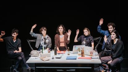 El espacio escénico es de Bibiana Puigdefàbregas. Bajo la media luz hace su entrada Désirée (Elena Martín). Se presenta: “Me llamo Désirée, soy una estudiante de Medicina”. Le responden, zumbones, algunos de sus compañeros: “¡Eterna estudiante de Medicina!”. Suenan, como créditos de apertura, Howling Around My Happy Home, de Daniel Norgren. ¿Estamos ayer, anteayer, pasado mañana? Seis jóvenes estudiantes de Medicina, pero también varios apresados por la pasión del cine. En los textos de presentación del montaje sintetizan: “Periodo de entreguerras” (aunque siempre hay entreguerras). Y “entre el nihilismo, el aburguesamiento y el suicidio” (otro frecuente trío en cualquier época), aunque parece predominar demasiado futuro. Es una de las obras más representadas en Alemania. En clave de drama furioso y de musical de tono más alto, incluso con giros irónicos.