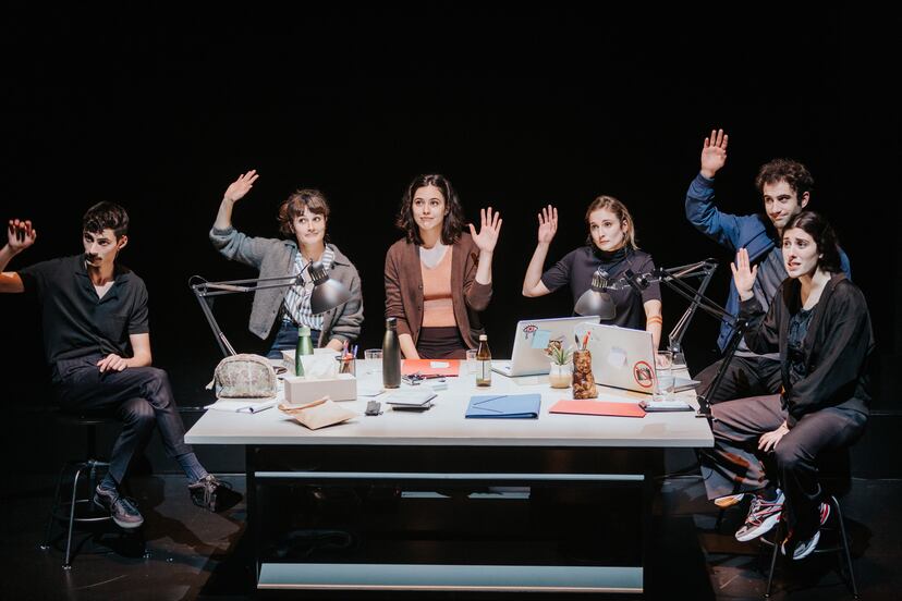 El espacio escénico es de Bibiana Puigdefàbregas. Bajo la media luz hace su entrada Désirée (Elena Martín). Se presenta: “Me llamo Désirée, soy una estudiante de Medicina”. Le responden, zumbones, algunos de sus compañeros: “¡Eterna estudiante de Medicina!”. Suenan, como créditos de apertura, Howling Around My Happy Home, de Daniel Norgren. ¿Estamos ayer, anteayer, pasado mañana? Seis jóvenes estudiantes de Medicina, pero también varios apresados por la pasión del cine. En los textos de presentación del montaje sintetizan: “Periodo de entreguerras” (aunque siempre hay entreguerras). Y “entre el nihilismo, el aburguesamiento y el suicidio” (otro frecuente trío en cualquier época), aunque parece predominar demasiado futuro. Es una de las obras más representadas en Alemania. En clave de drama furioso y de musical de tono más alto, incluso con giros irónicos.