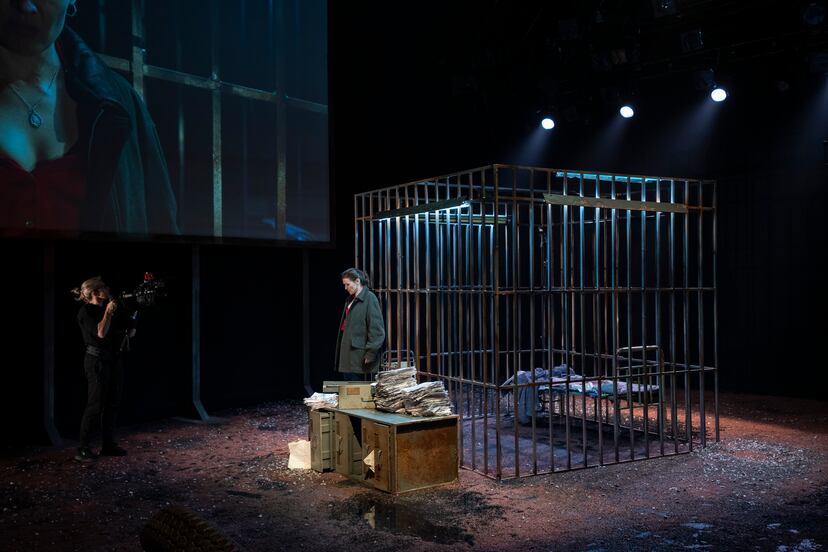 Exiliada en España desde 2019, la periodista da ahora un paso más en esa batalla convirtiendo ese relato en una obra de teatro, escrita en colaboración con José Martret, que también dirige su puesta en escena. Porque no es lo mismo leer una historia que verla revivida en un escenario. Puede impactar el doble porque el hecho de alguna manera se conjura. Esa es la fuerza del teatro documental y también el principal valor de este montaje, titulado La infamia, que presenta el testimonio de la periodista de una manera muy subjetiva para, precisamente, potenciar ese efecto. Sobre las tablas hay una sola actriz, Marta Nieto, que vuelve al día en el que Cacho fue secuestrada para recrear las distintas etapas de su sufrimiento como si le estuviera pasando otra vez, aunque en esta ocasión el resto de los personajes no están: solo la vemos a ella y es como si estuviéramos escuchando lo que pensaba en cada momento de su tortura, mientras una cámara de vídeo registra sus movimientos y sus gestos muy de cerca y lo emite en directo en una gran pantalla al fondo. Esa estrategia, por un lado, amplifica el efecto que se pretende, pues además la interpretación de la actriz es intensa y creíble; por otra parte, sin embargo, en algunos momentos dispersa y distrae la mirada del público. Otro problema es que no hay apenas variaciones en la fórmula y se acaba haciendo repetitiva.
