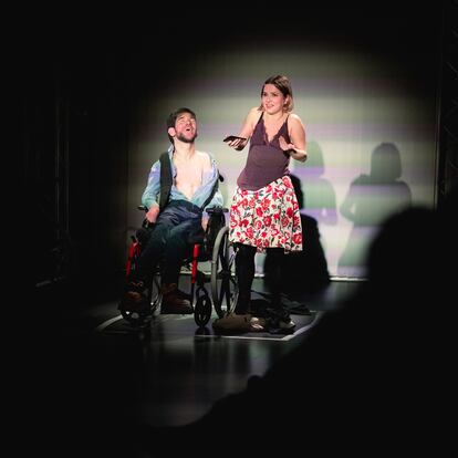 Cuando una buena parte del cuerpo apenas funciona, la parte funcional cobra una importancia mayor. Para Telmo Irureta, que tiene una movilidad muy reducida en brazos y piernas a causa de una parálisis cerebral infantil, el pensamiento, la palabra, los afectos y el sexo son un sustitutivo de la libertad de movimiento. “Telmo me desarma cuando me dice: “Es que ni siquiera me puedo tapar la cara cuando lloro”, explica Aitziber Garmendia, su compañera de reparto en Sexpiertos, la comedia que están representando estos días en Las Palmas de Gran Canaria y la semana próxima en Madrid, en el Teatro Fernán Gómez. Kepa Errasti y el propio Irureta la compusieron a cuatro manos: es un decir, porque este sufre una contractura distónica de los dedos y tiene la muñeca desviada.