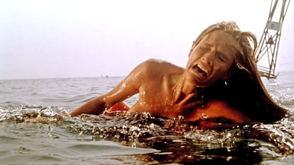 ¿Qué tiene dientes blancos, gana millones de dólares, devora mujeres y no es Warren Beatty? Valga el acertijo-chascarrillo políticamente incorrecto —estábamos en los setenta— del crítico y presentador televisivo Barry Norman (la respuesta era obviamente Jaws, Tiburón) para empezar a hablar de la famosa película de Steven Spielberg que justamente este viernes, 20 de junio, cumple la friolera de 50 años de su estreno (en Estados Unidos, en España llegó a las pantallas, tras presentarse en septiembre en el festival de San Sebastián, el 19 de diciembre, afortunadamente fuera de la temporada playera).