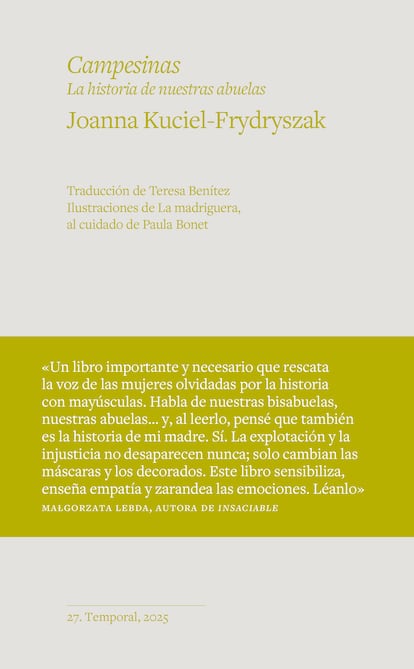 Perfecta conocedora de la literatura testimonial, la periodista Joanna Kuciel-Frydryszak se ha dedicado a recopilar la memoria de miles de mujeres que vivieron y trabajaron en el campo polaco durante la primera mitad del siglo XX. Un caudal de valiosa información vertido en un libro que ya ha vendido en Polonia más de 600.000 ejemplares y que ha abierto un debate sobre la memoria política y familiar. Kuciel-Frydryszak “hilvana cada testimonio, cada historia, cada detalle con una prosa precisa y afilada, que da forma a un retrato que impacta por su desnudez”, según aseguran los editores de un volumen que cuenta con ilustraciones de varias artistas de la Madriguera, el taller de Paula Bonet. A la venta el 30 de octubre.