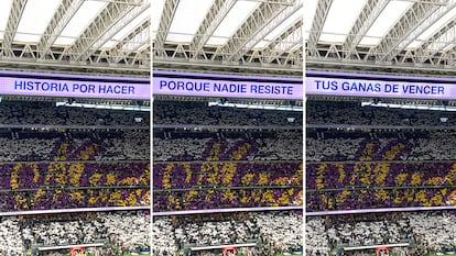 Pues bien, llevo diez años escuchando en mi asiento del Bernabéu el último himno madridista (el tercero por orden de creación), en el que la voz cantante, que en esta ocasión no es la de Florentino Pérez, interpreta a todo volumen los versos escritos por mi compañero Manuel Jabois; y dice en un momento dado: “Historia que tú hiciste, historia por hacer. / Por qué nadie resiste tus ganas de vencer”. Sin embargo, cuando se oye “por qué” el rótulo electrónico dice “porque”: “Porque nadie resiste tus ganas de vencer”.