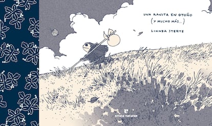 La aventura iniciática de una joven ranita que decide acompañar a dos sapos bandoleros en su viaje en busca de climas más cálidos. Travesuras y sorpresas en el trayecto de esta desvelada criatura que observa, piensa y actúa. Los dibujos en plumilla con estilo oriental y su cuidada edición hacen de este libro una joya.