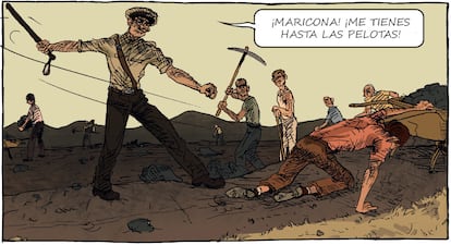 Otras disciplinas se han sumado a esta ola. En 2018, el cómic El Violeta (Drakul) fue de los primeros en convertir en relato gráfico los métodos de castigo contra la disidencia sexual. Más recientemente, Que no se olvide (Salamandra) ha retomado esa memoria a partir del testimonio de represaliados. El documental Un hombre libre recupera la figura del escritor Agustín Gómez Arcos, víctima de una doble condena por ser homosexual y crítico con el régimen. Y la película Els mals noms, premiada en el pasado festival de Sevilla pero aún pendiente de distribución, desmonta la leyenda negra de La Pastora, nombre con el que fue conocido Florencio Pla Meseguer, persona intersexual y uno de los últimos maquis valencianos, que sufrió un acoso continuo. “Hay más casos que el de Lorca o el Grupo Cántico, muchas historias que aún no se han contado”, dice su director, Marc Ortiz Prades. “Es importante ver cómo esa represión llegaba al pueblo más pequeño, al sitio más recóndito. Entender esto nos ayuda a entender cómo somos como sociedad”.