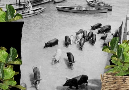 Agua (2025), concentra esa sensibilidad. Aunque no fue tomada en el Terraplén, muestra a varias mujeres sentadas. Están trabajando pero se muestran alegres, impecablemente vestidas y adornadas por sombreros blancos. “La fotografía me hizo pensar mucho en la cuestión de la representación”, advierte la autora. “En cómo queremos ser vistas”. Para De Dier, esta imagen remite simbólicamente al Terraplén como territorio de la mujer migrante caribeña, fértil en esfuerzo, sostén de la comunidad y eje de la vida cotidiana. De igual forma, Botes y Puercos en la bahía (2026) pone el foco en un espacio habitado por animales, que hoy sería impensable en un lugar “lavado” para el turismo. La transformación urbana, además de unificar las vidas, altera no solo a las personas, sino también la relación histórica de la comunidad con su territorio.
