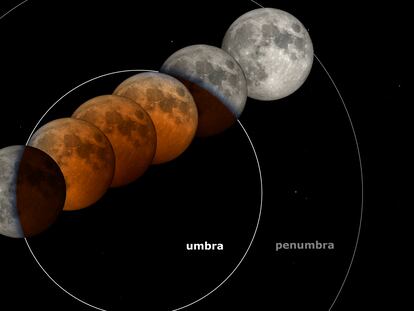 El fenómeno será visible al completo desde toda América. En España comenzará al final de la noche de este jueves, por lo que de la fase de totalidad solo se verán los primeros minutos, casi al amanecer