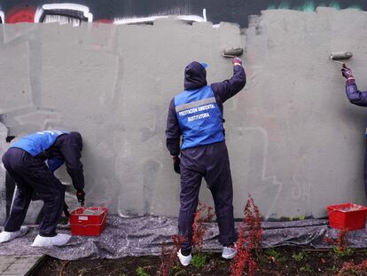 El delegado de Medio Ambiente convoca a los medios de comunicación para mostrar cómo trabajan seis jóvenes a los que han pillado haciendo pintadas