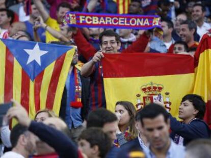 Banderas de todos los colores, pitidos y aplausos al himno y ambiente festivo en la grada
