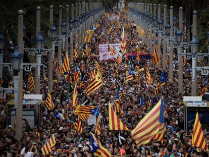 La tradicional manifestación de Barcelona sufre el efecto de la desmovilización y reúne a 28.000 personas, mientras 12.000 se concentran en Girona y 1.500 en Tortosa