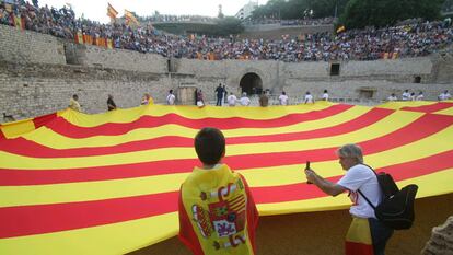 Una gran senyera carregada per uns cinquanta voluntaris de la plataforma Societat Civil Catalana —defensora que Catalunya segueixi formant part d'Espanya— s'ha estès aquesta tarda a l'amfiteatre romà de Tarragona. Els Mossos d'Esquadra han estimat en 3.500 els assistents a l'acte, mentre que l'Ajuntament de Tarragona els ha xifrat en 7.000, molts arribats de diferents ciutats catalanes. Era el contrapunt a la multitudinària V humana de Barcelona i un intent d'evidenciar que la bandera catalana ha quedat relegada a un segon pla a causa del procés sobiranista iniciat per la Generalitat, el màxim exponent del qual és la consulta independentista prevista per al proper 9 de novembre.