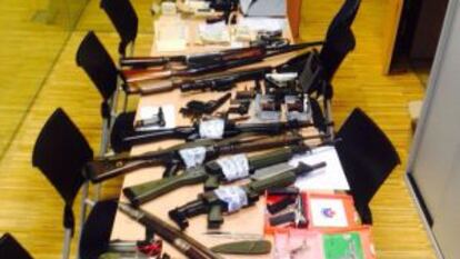 - La Policia Nacional va confiscar als arrestats dotze pistoles, quatre fusells d'assalt, tres escopetes, una granada de morter, dues pistoles detonadores i una d'elèctrica. La investigació ha durat un any i mig.