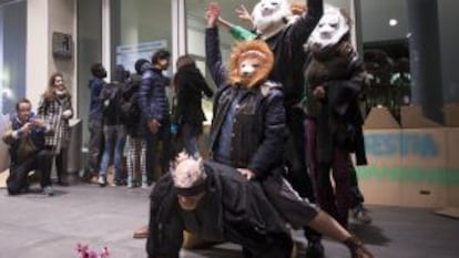 Reclamar un museu “democràtic” ha estat l’objectiu del centenar de persones que s’han aplegat aquest dimecres al vespre davant del Macba. Els manifestants han volgut expressar el seu desacord amb la suspensió de l’exposició i alguns, disfressats, han fet una paròdia de la polèmica escultura.