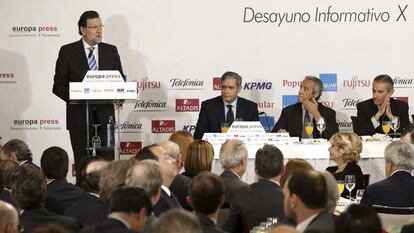 En un esmorzar informatiu organitzat per Europa Press, Rajoy ha fet repàs de les decisions que durant més de tres anys ha adoptat el seu Govern per fer front a la crisi econòmica causada, segons ell, per la "inacció" de l’Executiu que presidia el socialista José Luis Rodríguez Zapatero: “Per incompetència o per mandra". El president del Govern espanyol ha lamentat una vegada més l'herència rebuda i ha defensat amb vehemència la reforma constitucional que el PSOE i el PP van pactar en l'anterior legislatura, de la qual s'ha desmarcat el secretari general del PSOE actual, Pedro Sánchez. Rajoy ha assegurat que l'any que ve Espanya "tornarà a la normalitat prevista en l'article 135 de la Constitució, aquell que diu que no cal tenir dèficit i que cal contenir el deute públic".