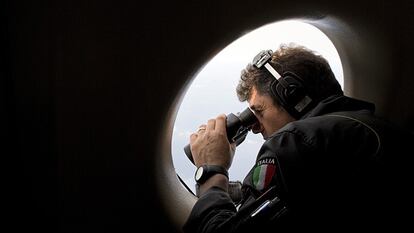 La tasca de l'avió és vigilar. Veure sense ser vist. “El més important és que els immigrants no ens detectin per evitar que, en la seva desesperació, es posin nerviosos i caiguin a l'aigua o provoquin que el vaixell bolqui, com va passar aquell dia”, explica el lloctinent Puglisi. “Gràcies a la càmera de llarg abast de l'avió i a l'altura a la qual volem, 4.000 peus (1.200 metres), podem visualitzar-los perfectament a una distància de més de 20 quilòmetres sense que ells ens vegin. Quan els localitzem donem immediatament les seves coordenades a la nostra sala operativa a Roma, que s'encarrega de mobilitzar els vaixells que són a la zona. Són els guardacostes, la marina militar o els patrullers de la Guardia di Finanza els que els socorren allà baix”.