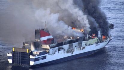 Un incendi a alta mar ha afectat una embarcació d'Acciona Trasmediterránea Quatre ferits de la tripulació, intoxicats per fum, han estat traslladats en helicòpter
