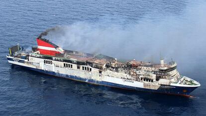 Diversos tècnics de l'armador i de Salvament Marítim han accedit aquesta dimecres a la tarda al buc. Ho han fet una vegada s'ha donat per controlat l'incendi que s'havia declarat el dia anterior al ferri. Ho han fet amb molta cautela perquè les cobertes estaven reblanides pel foc. L'incendi va arribar als 500 graus, segons el Ministeri de Foment.