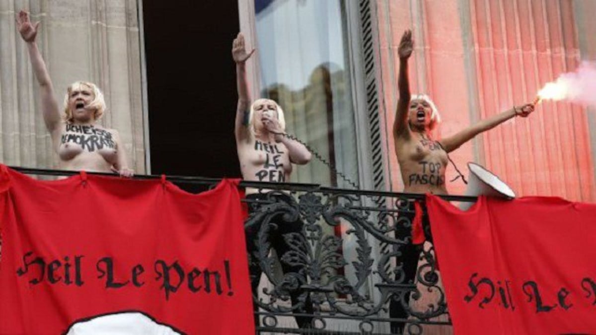 Membres de Femen interrompen Marine Le Pen en el tradicional discurs del Primer de Maig