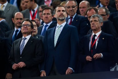 El sotssecretari de Política Autonòmica i Local del PP, Javier Arenas, va qualificar de “lamentables” les xiulades a l'himne i al Rei. “Caldria plantejar-se estudiar si cal introduir canvis legals perquè aquests incidents no es tornin a produir”, va afirmar. Ciutadans també va condemnar la xiulada. El seu secretari general, Matías Alonso, va criticar que els dirigents independentistes “exigeixen contínuament respecte absolut als seus símbols partidistes, però ataquen sense decòrum els símbols” espanyols.