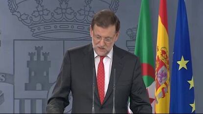 El president del Govern espanyol, Mariano Rajoy, ha confirmat aquesta tarda que el seu Executiu "està preparat per a qualsevol problema que pugui sorgir en el futur" en relació amb una hipotètica declaració d'independència unilateral des de Catalunya, però va intentar, sobretot, transmetre un missatge de tranquil·litat i confiança que l'actual model de l'Estat espanyol no canviarà. Rajoy va repetir tres vegades un "estiguin tranquils" genèric dirigit a la societat espanyola en el seu conjunt perquè va afirmar que "els catalans, espanyols i europeus" que viuen ara a Catalunya "no perdran la seva condició i també va apel·lar a la tranquil·litat sobre el fet que "no es trencarà la sobirania nacional" ni "hi haurà independència de Catalunya".