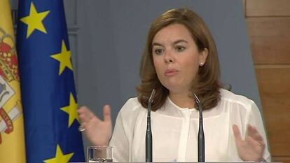 La número dos de l'executiu manté que el PSOE haurà d'explicar molt bé com havent estat durant la legislatura "el millor client" del Tribunal Constitucional a l'hora de plantejar recursos a les lleis aprovades pel Govern defensa ara que si aquest organisme judicial li donés la raó l'Executiu no tindria l'obligació d'acatar aquesta posició. La vicepresidenta va destacar així que l'important en aquesta reforma és "el fons", és a dir, "que les resolucions judicials es compleixin", encara que va apuntar que aquesta modificació es podria haver inclòs quan es va abordar la nova llei del Tribunal Constitucional des del principi. En aquest sentit, va considerar una qüestió menor que el nou plantejament hagi estat presentat al Congrés amb l'assistència del nou candidat del PP a la Generalitat, Xavier García Albiol.
