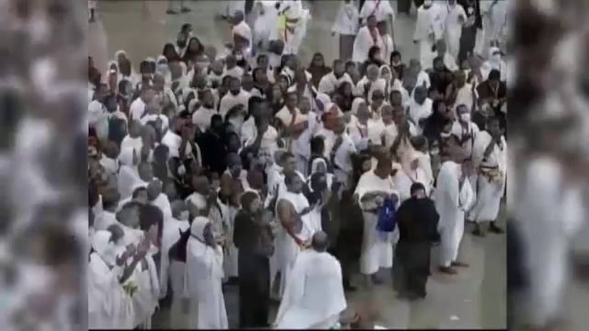 El hajj, o gran pelegrinatge a la Meca, que tot musulmà que estigui capacitat per fer-lo ha de dur a terme almenys una vegada en la seva vida, és una de les concentracions religioses més grans del món. Des del 2012 quan es van superar els tres milions de pelegrins, l’Aràbia Saudita ha limitat el nombre d'assistents a causa tant de les controvertides obres que es fan a la Gran Mesquita de la Meca com del temor a epidèmies. Però es tracta d'una mesura temporal, ja que l'objectiu de les obres és ampliar la superfície de l'aljama en 400.000 metres quadrats, perquè pugui acollir fins a 2,2 milions de fidels al mateix moment. Per aquest motiu en les imatges es veu tot el voltant del recinte envoltat de grues gegantines.
