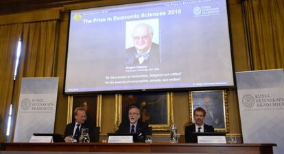 La Reial Acadèmia Sueca de les Ciències ha guardonat aquest dilluns el professor britànic-nord-americà Angus Deaton (Edimburg, 1945) amb el premi Nobel d’Economia per "la seva anàlisi sobre el consum, la pobresa i el benestar social". Deaton és catedràtic de la Universitat de Princeton (Nova Jersey, EUA). Matemàtic de formació, és un dels millors coneixedors de l'economia d'àrees rurals de l'Índia. Al llarg de la seva carrera, aquest economista heterodox ha destacat per la seva capacitat per relacionar les eleccions individuals amb els indicadors agregats, posant en contacte el món de la microeconomia amb el de la macroeconomia i ajudant a transformar el seu estudi.