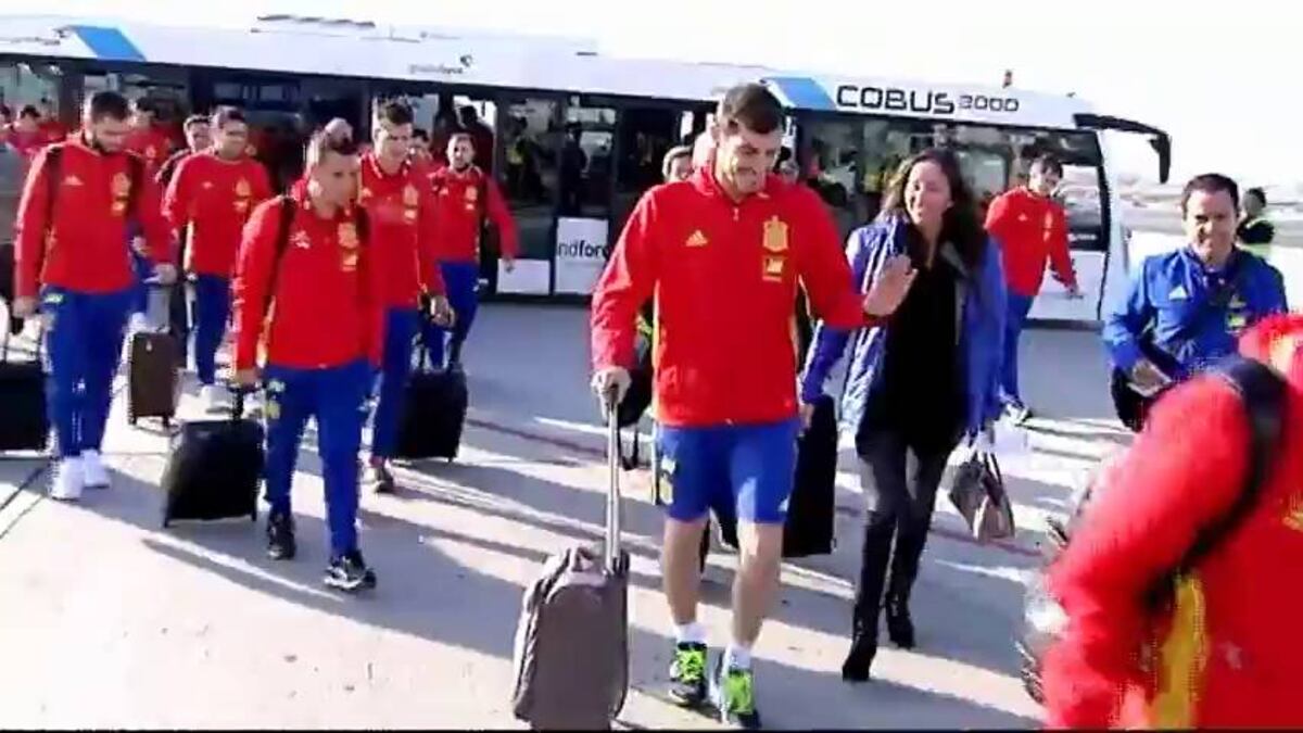 Des de l'aeroport, els agents motoritzats i els vehicles camuflats van escortar l'autobús dels internacionals, que van accedir a l'hotel per una porta secundària. Un centenar d'aficionats que esperaven al carrer, separats per una tanca, van poder presenciar l'arribada al recinte. Jordi Alba va ser l'únic que va accedir a fer-se fotos amb els seguidors. Ja dins de l'hotel, les mesures de seguretat també es van reforçar. L'accés a l'ala ocupada pel cos tècnic, jugadors i directius, encapçalats pel president de la federació, Ángel María Villar, va ser bloquejat des de la planta baixa. Una desena de gendarmes i diversos policies de paisà custodiaven la zona reservada i els limítrofs de la residència.