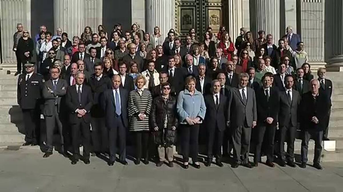 Espanya ha guardat un minut de silenci en memòria de les víctimes dels atemptats de divendres a París, que s'ha seguit al Congrés, seus governamentals, tots els organismes oficials i nombrosos centres de treball. Al Palau de la Moncloa, on la vicepresidenta, Soraya Sáenz de Santamaría, ha presidit l'acte d'homenatge, han acudit els ambaixadors a Espanya del Regne Unit, Algèria, Romania, Bèlgica i Mèxic, així com els ministres consellers de les ambaixades de França, els Estats Units, el Marroc, Suècia i Dinamarca.
